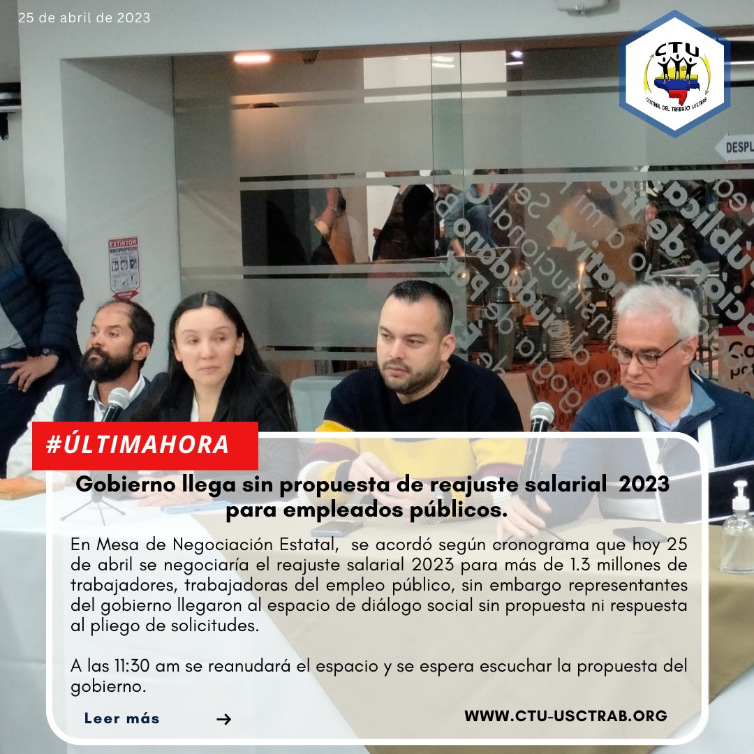 Inicio de Negociación Estatal 2023, marzo 6 de 2023. Entre la Central CTU-USCTRAB, sus federaciones, Presidencia de la República, Ministerio del Trabajo y Función Pública